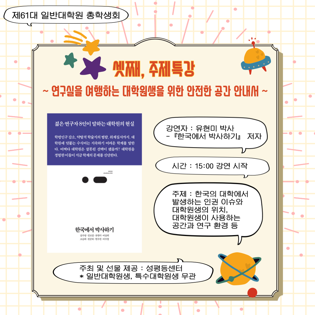 3) 주제특강-“연구실을 여행하는 대학원생을 위한 안전한 공간 안내서”