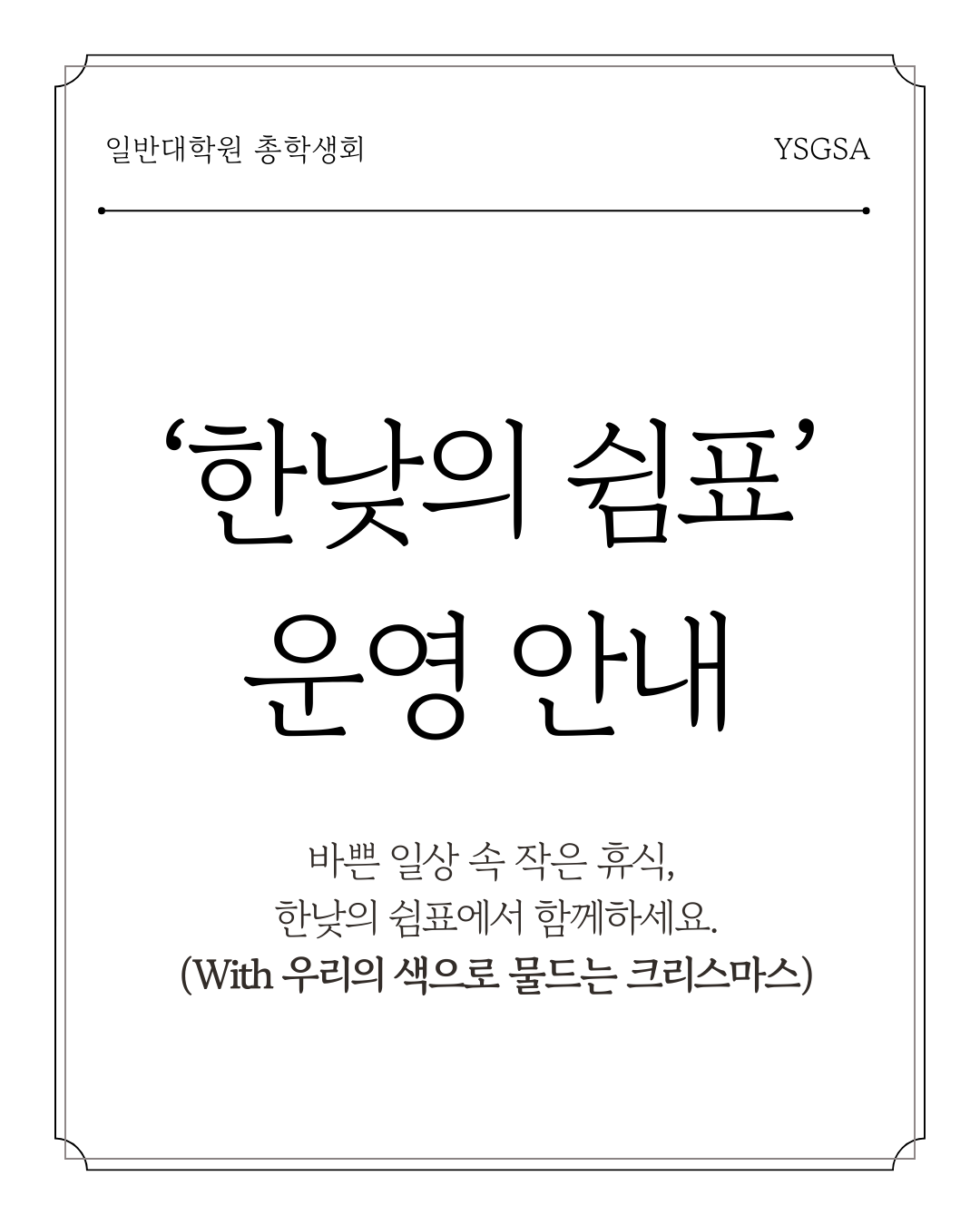총학생회에서는 대학원생 전용 휴게실-'한낮의 쉼표'를 운영합니다.